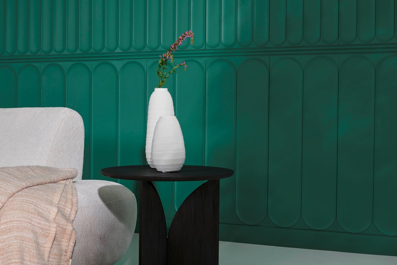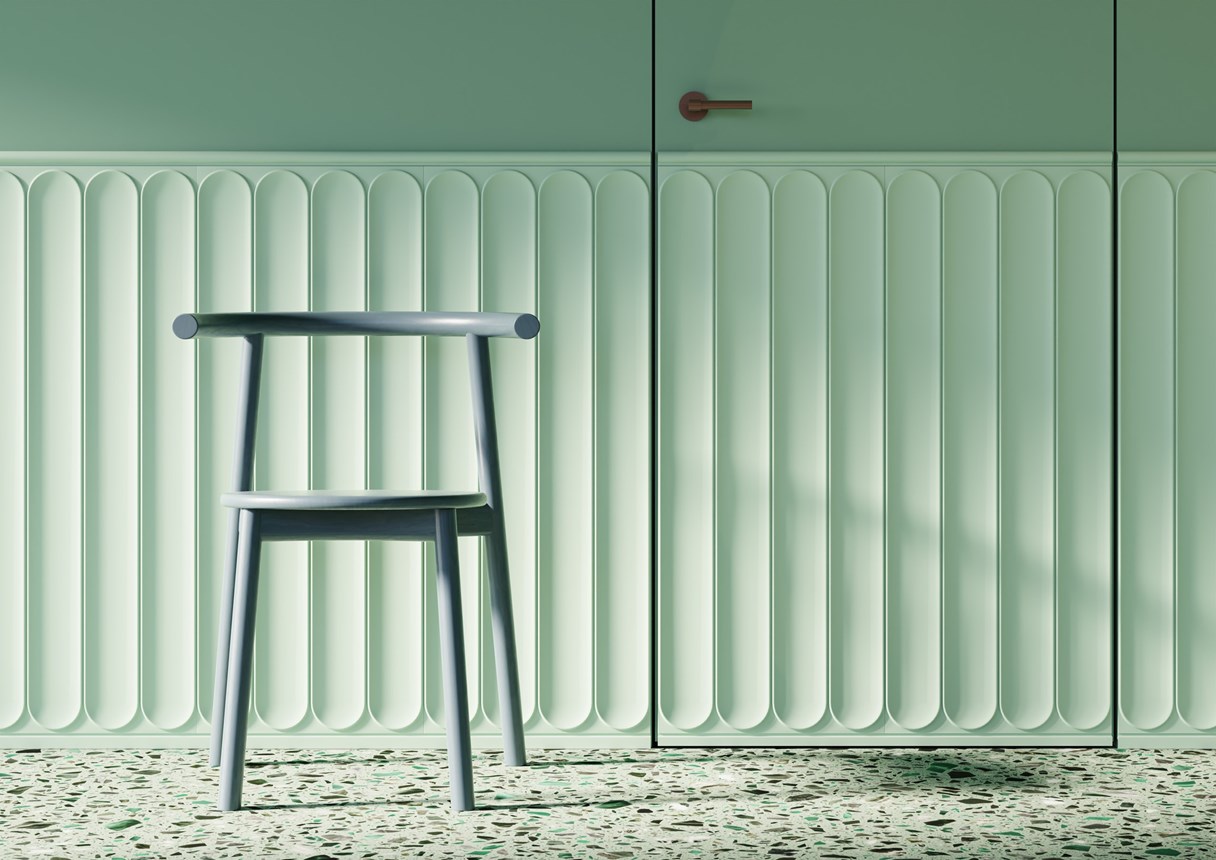 Our new wall panels, Arc S and Arc L, are a reinterpretation of a traditional wainscotting. Characterized by a harmonious silhouette, the delicate contrast of straight and round lines creates a subtle outline around the curved surface.