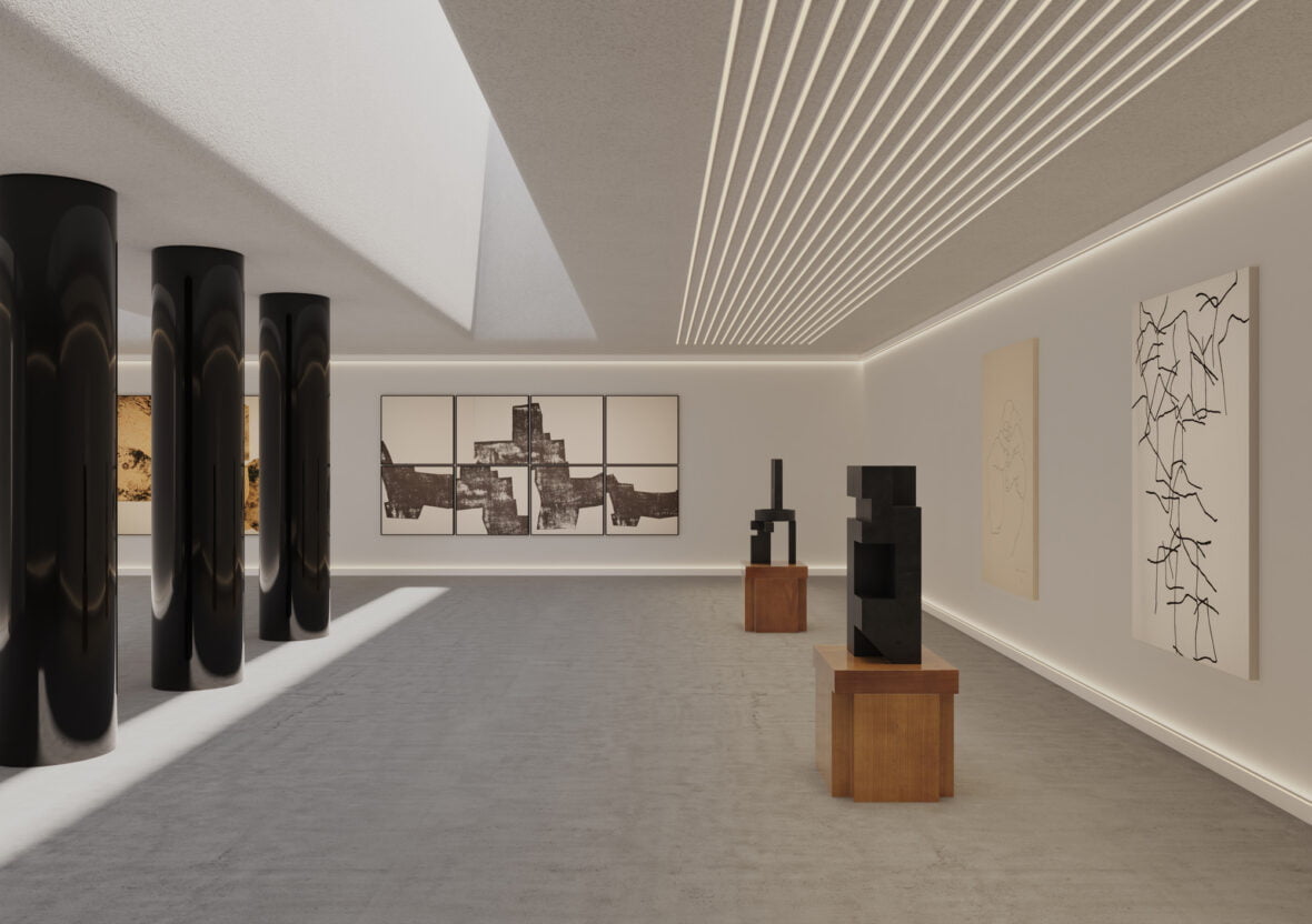 A certain curiosity before entering. Once inside: the linear light guiding the visitor along an artistic discovery, showing the way of a unique journey. Walls as a giant frame, guarding the artwork, resonating with it. An architecture of simplicity and contrasts, and love for art. Impressive yet never dominating.