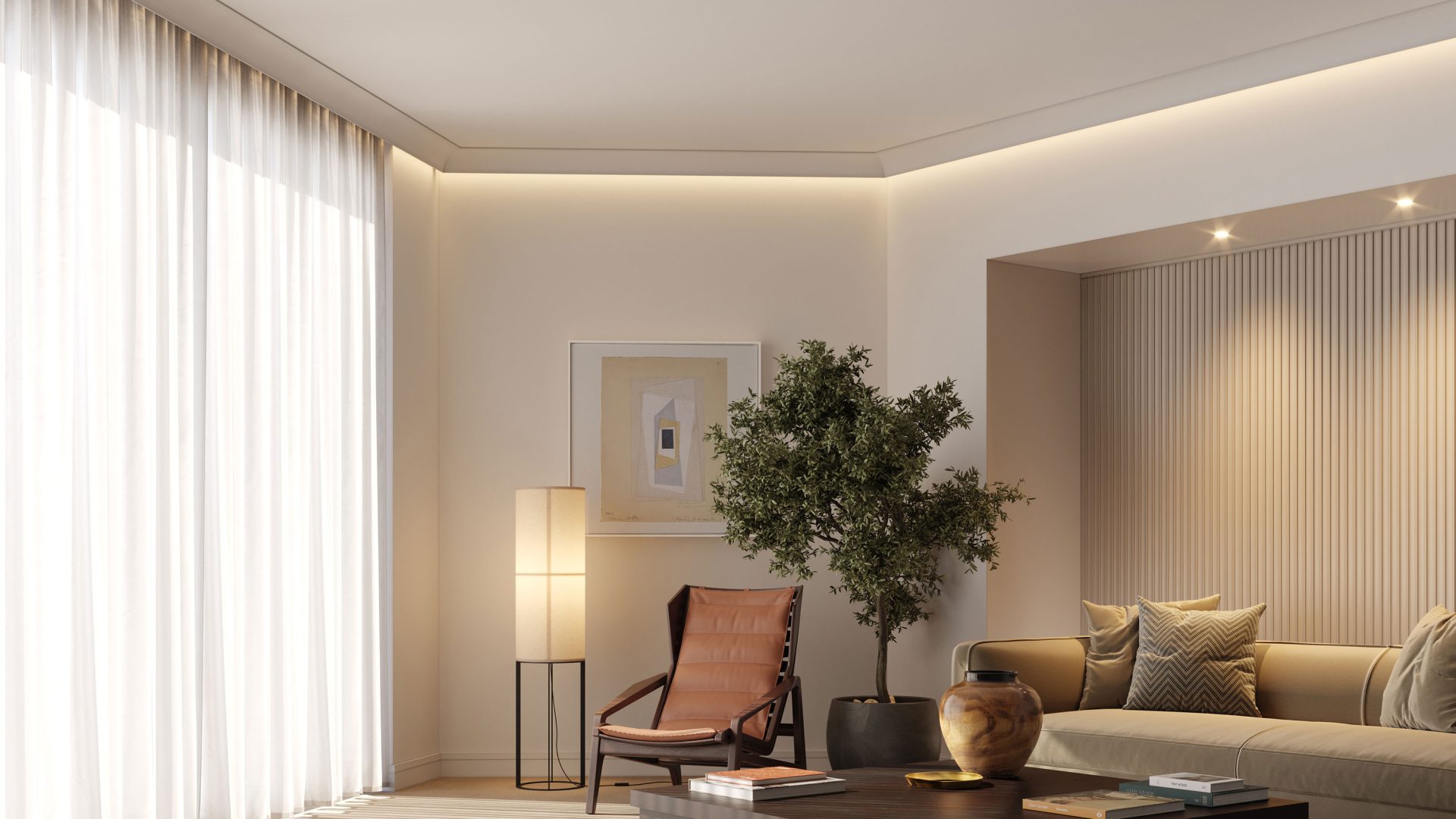A pure and minimalistic approach with unclutterd shapes and textures. The smooth lines, geometric shapes of our mouldings give your room an artistic touch.
