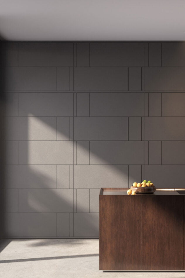 The Scuretto panel evokes ashlar and its mineral structure known to all. With its fine notches, it offers an almost endless variety of combinations for an unmistakeably contemporary result.