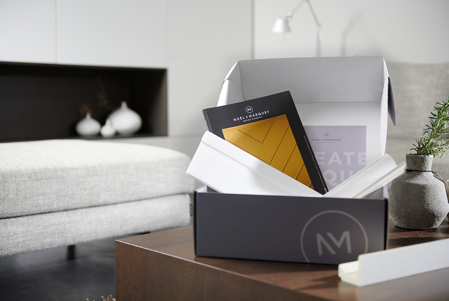 At NOËL & MARQUET we believe it is important to be able to create your unique living space and to see the effect our decorative products bring to your room. Whether it is a cornices, a chair rail, a skirting, a profile for indirect lighting or a facade profile, we offer you the possibility to order your samples online.