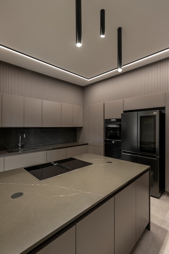 Moving to the back rooms, where the meals are prepared, these functional spaces have been designed in warm and comforting brown tones. The lengths of these “twin” rooms have been covered with the CANELÉ L panel which provides a vibrant elegance and a refreshing, modern decorative twist.